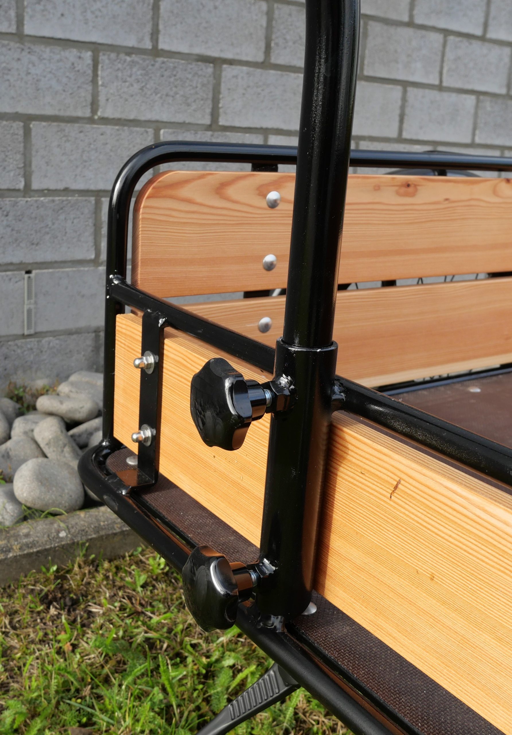 Persönliche Anpassungen für jeden Bedarf. Alle Schrauben und die Speichen sind aus hochwertigem Edelstahl. Die Felgen sind robuste Hohlkammerfelgen. Reifen mit hoher Traglast. Hochwertige Hölzer geölt oder lasiert, ganz nach ihren Wünschen.